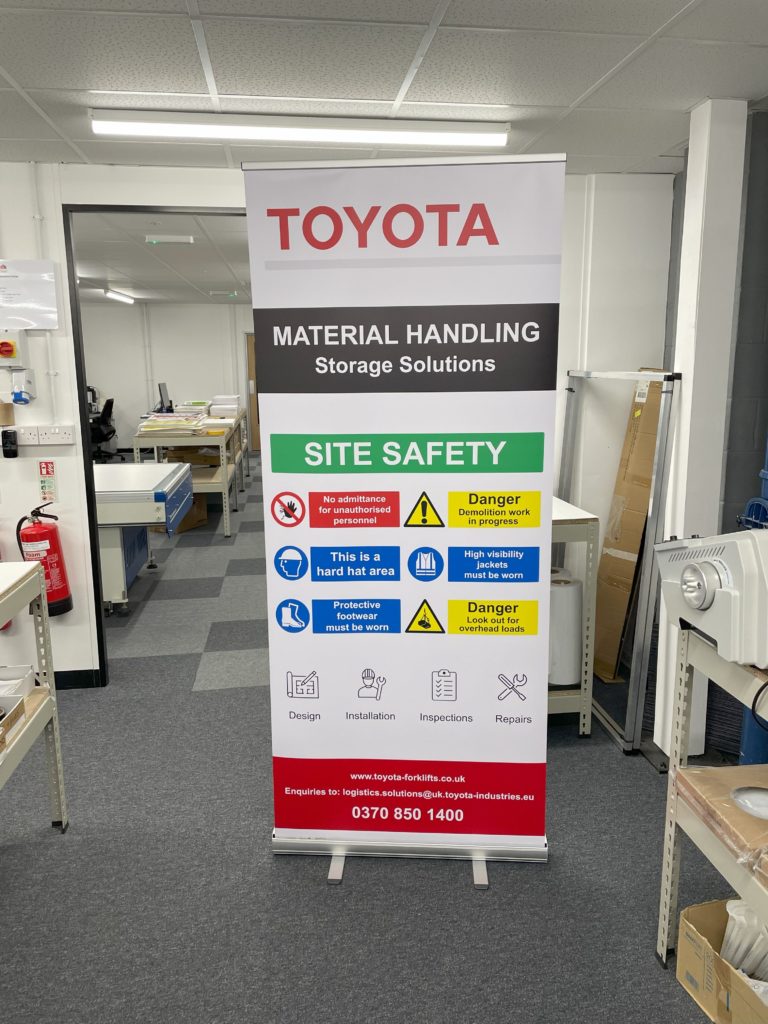 Our pop-up signs are designed and produced by our team using the most appropriate materials to ensure that the signs are robust and that the material does not crease, meaning they are well suited for purpose, can be moved around and used for a variety of functions.